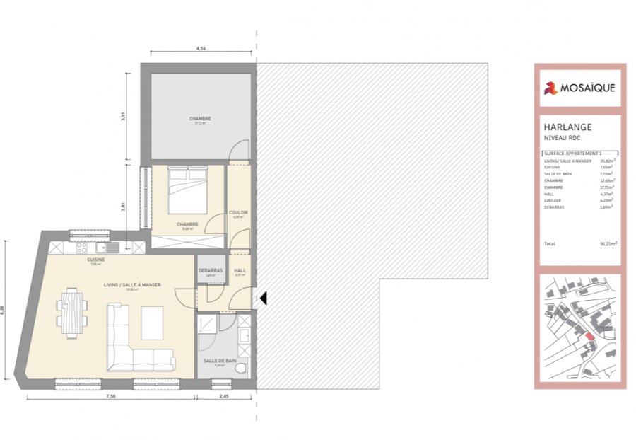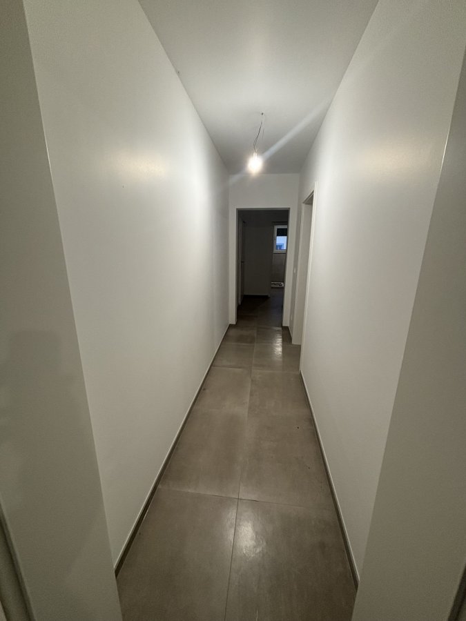 Situé au rez de chaussée de la nouvelle résidence, bel appartement (n°1) neuf et disponible immédiatement pour 1ère occupation, disposant d'une surface de +/- 91 m², comprenant :- Hall d'accueil.