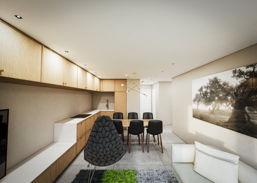 - Cuisine non équipée ouverte sur la salle à manger.