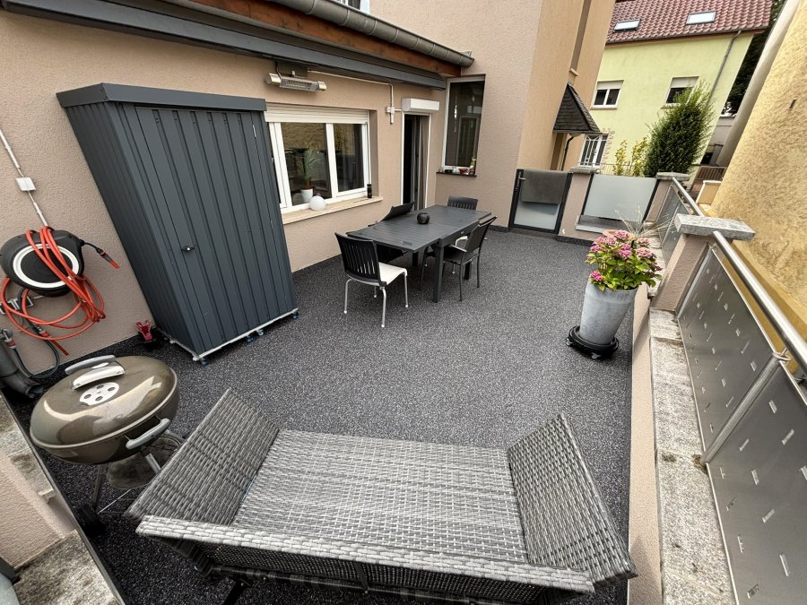 - Cuisine équipée ouverte sur salle à manger et accès terrasse de +/- 20 m² exposée Ouest.