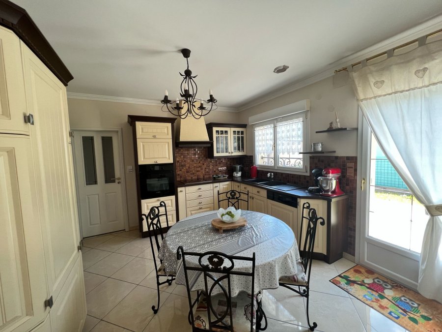 - Belle cuisine équipée partiellement ouverte sur la salle à manger avec accès à la terrasse et au jardin.
