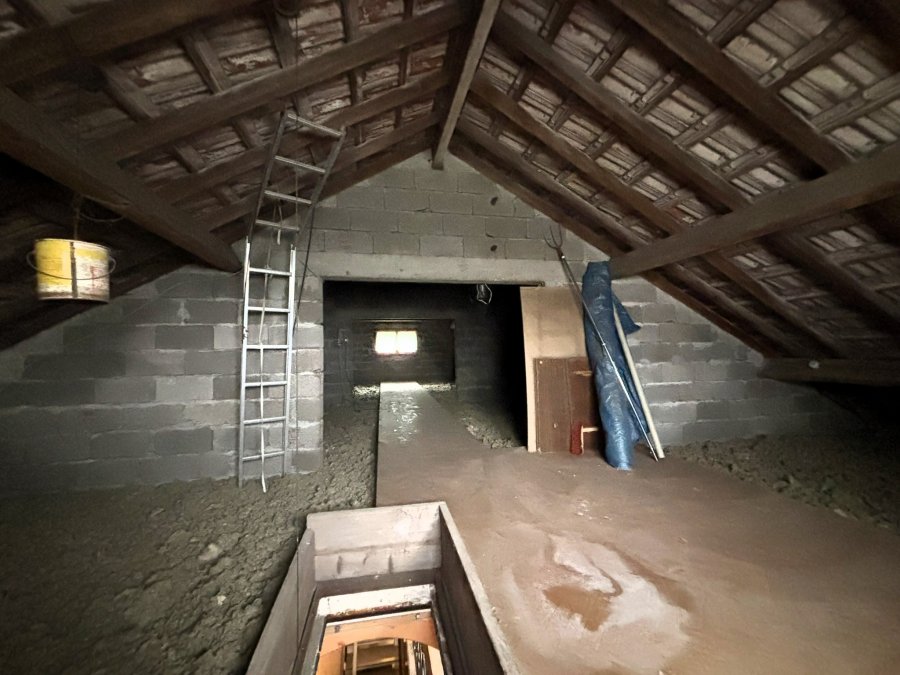 - Grenier isolé et aménageable sur dalle en béton, accessible actuellement par une échelle de service depuis le 1er étage.