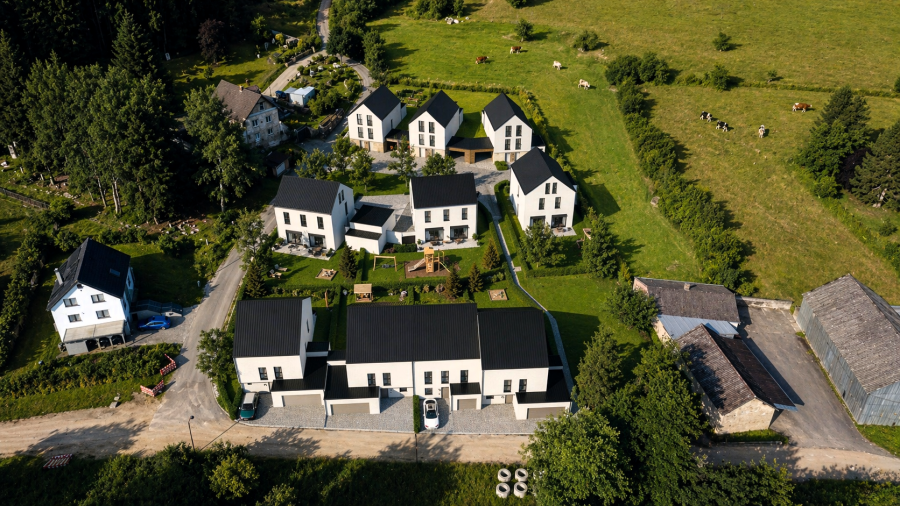 Classe énergétique A/B : Chaudière pompe à chaleur avec chauffage par le sol / Triple vitrage et volets électriques / VMC double flux / revêtements des sols et muraux inclus et au choix des clients / et salles de bains complètes avec meuble lavabo au choix inclus.