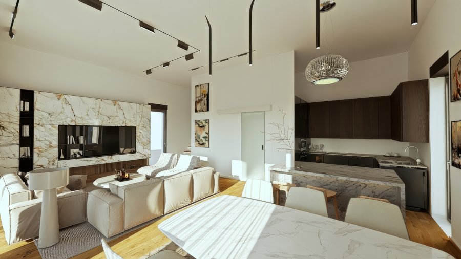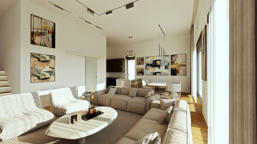 - Grand salon et salle à manger avec accès de plain-pied à la terrasse de +/- 25 m2 et au jardin (+ abris de jardin de +/- 5 m2 à l'extérieur).