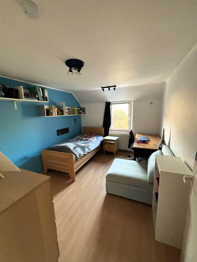 Le deuxième étage propose trois chambres supplémentaires, idéales pour une grande famille, un espace bureau ou des invités. L'une d'elles donne accès aux combles via une échelle de service.