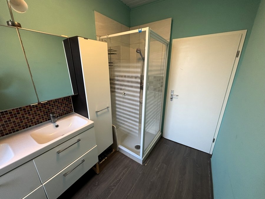 Au premier étage, vous trouverez deux grandes chambres ainsi qu'une salle de douche moderne avec WC et double vasque.